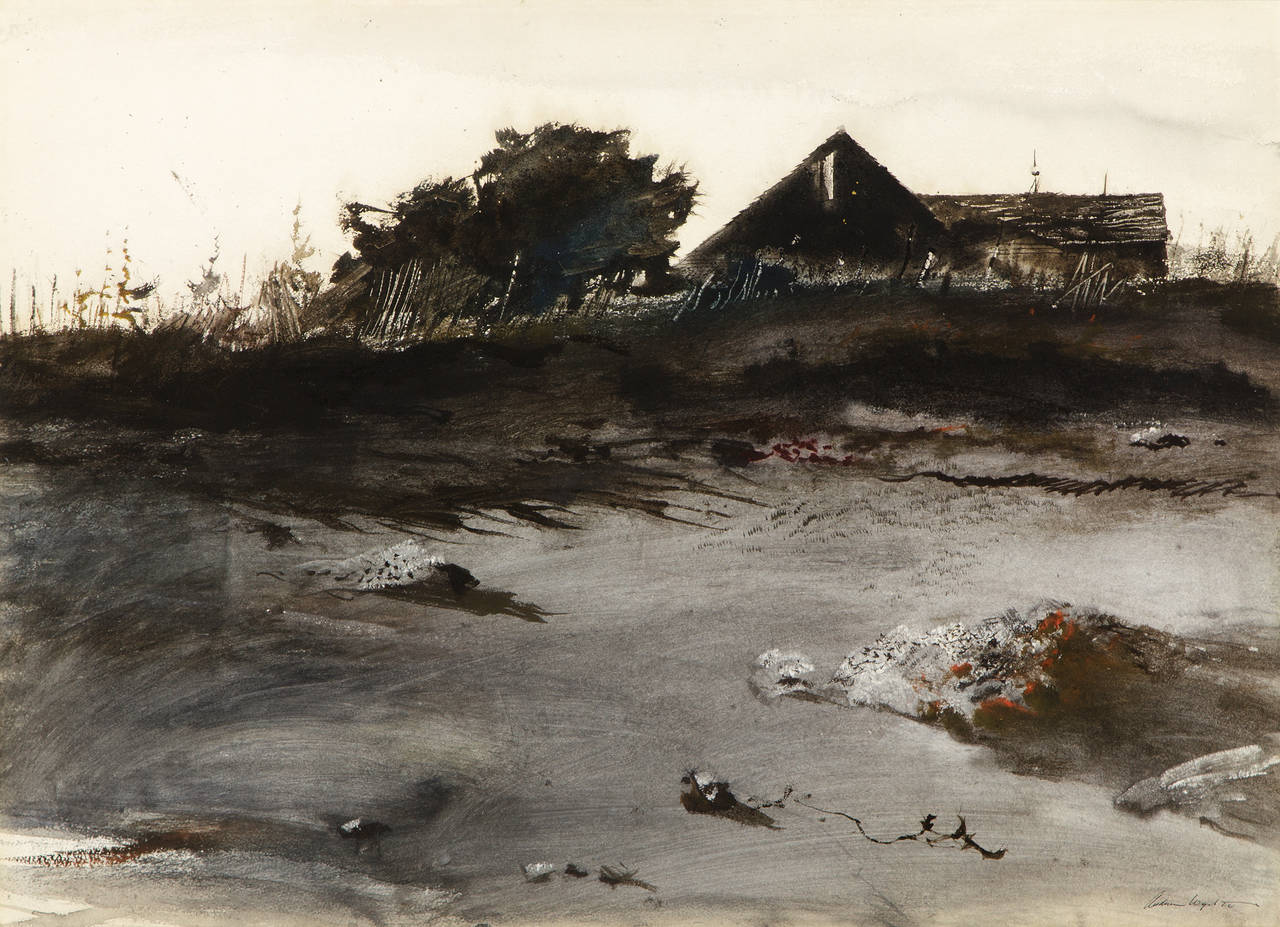 wyeth andrew hill paintings watercolor winter snow 1953 auction landscapes painting landscape artwork jamie 1917 artist 2009 surovekgallery mutualart bensozia