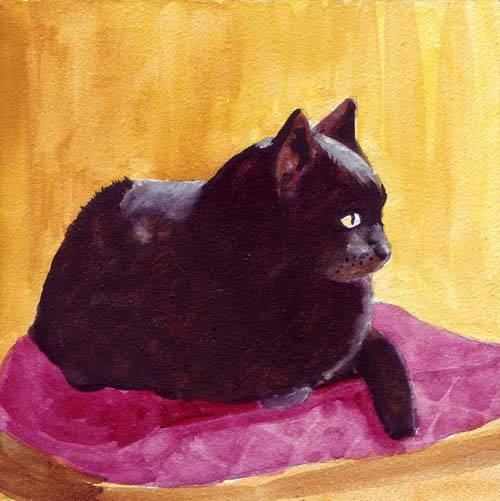 cat painting watercolor 5x7 custom portrait cats dswatercolors scheirer david beach artist watercolour noir