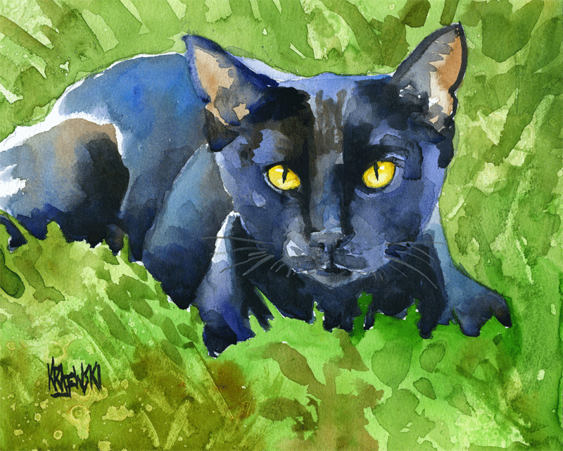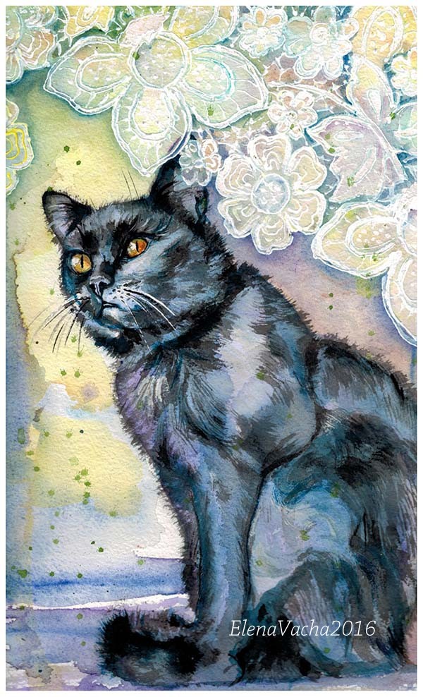black cat watercolor paintings