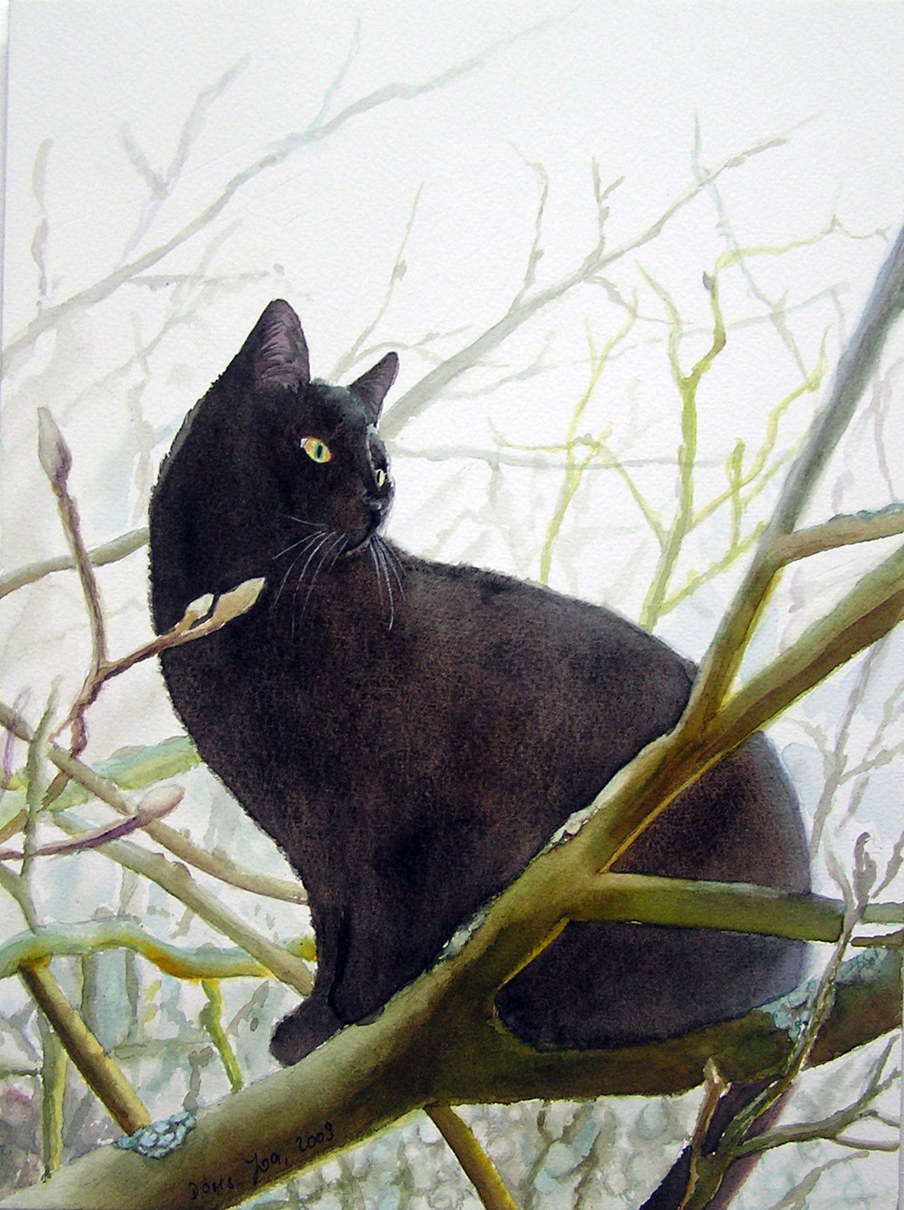 cat painting watercolor joa doris paintings realistic tree fine sitting water oil magnolia cats watercolour timmi kittens kitten flowers german