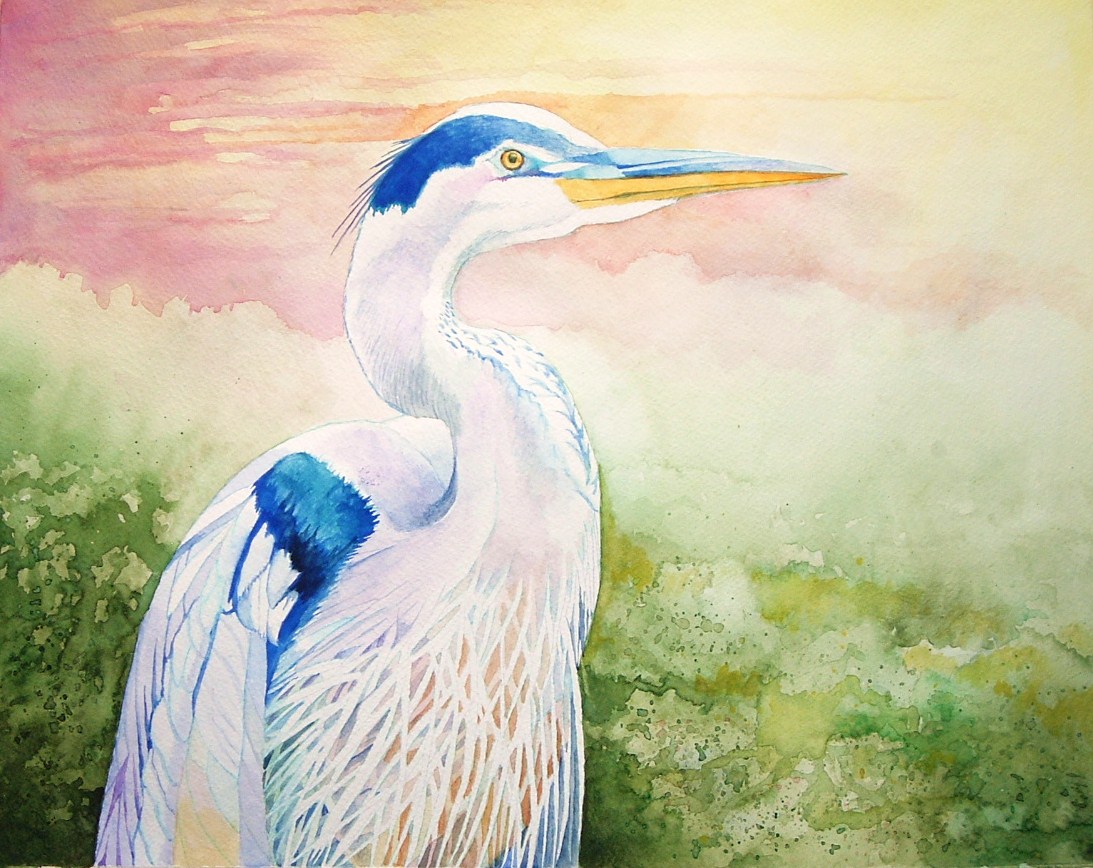 heron paintings herons etsy bird watercolor drawing painting drawings egret birds tattoo similar items acrylic water crane watercolors illustration pastel
