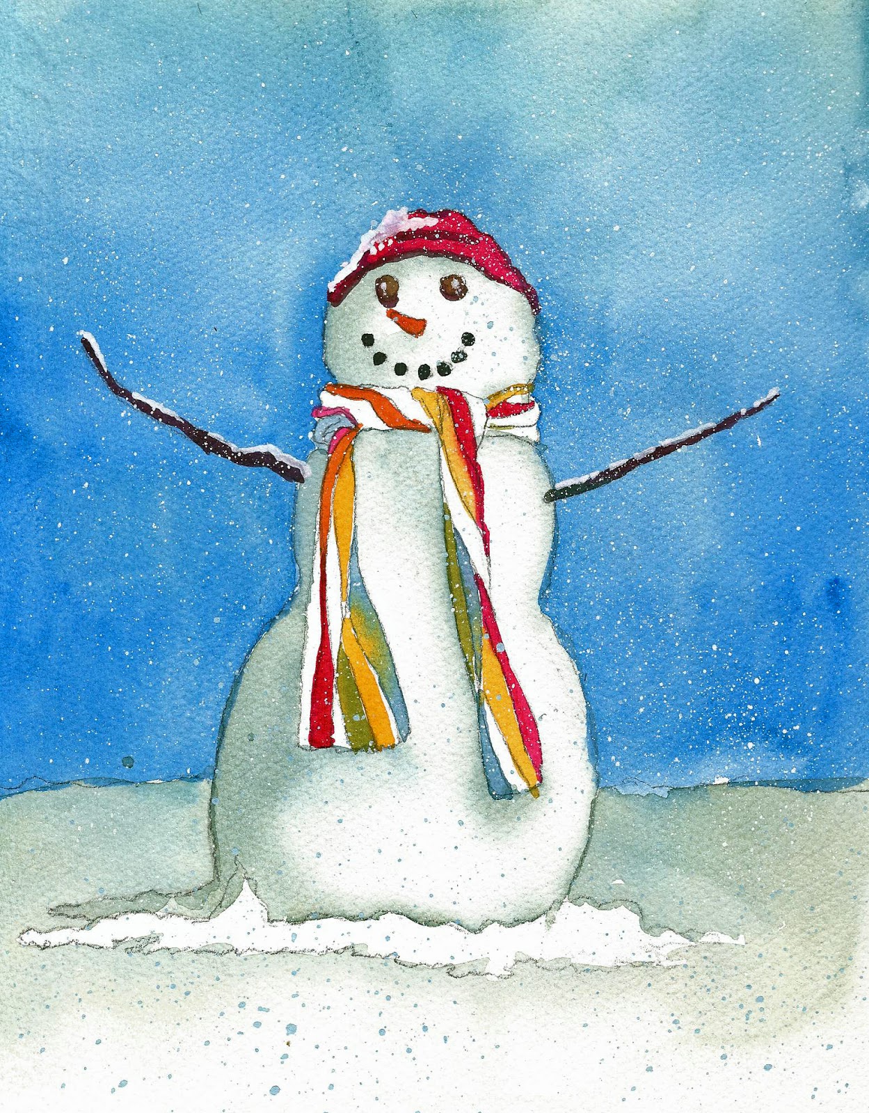 watercolor christmas snowman painting holiday winter paintings print clipart snowmen etsy watercolors