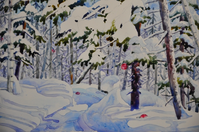 landscape snow scene watercolor paintings painting cook evergreen watercolour scenes tree water landscapes pj woods night paper oil artist studio