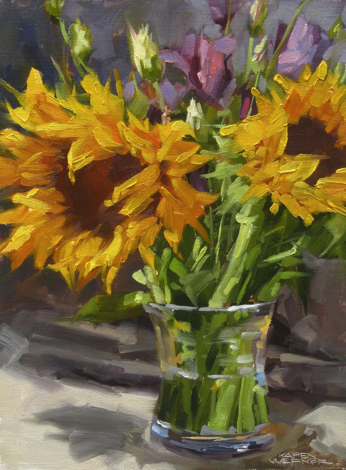 oil painting sunflowers fine werner karen violet paintings flower flowers sunflower still demo floral artists artistic did canvas fall karenwernerart