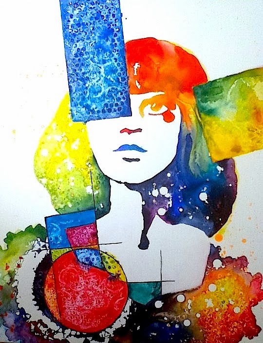 watercolor effect female face portrait hole painting into turned getdrawings paintingvalley colorful watercolors funny
