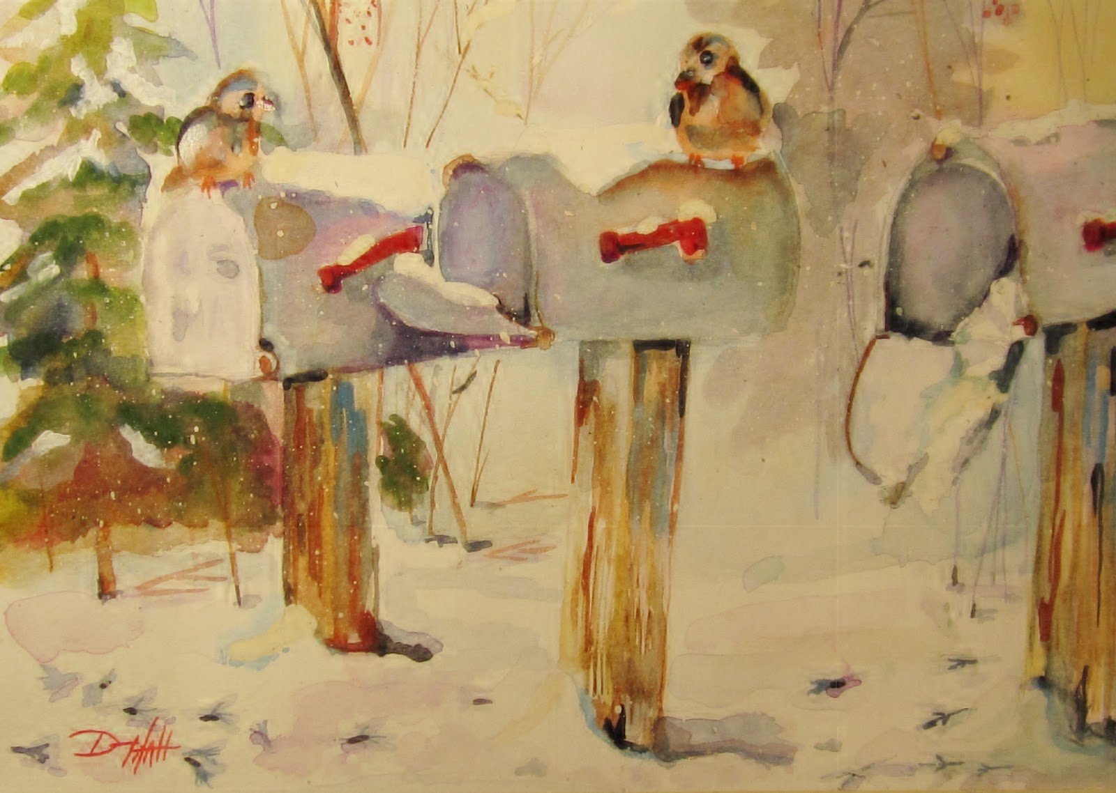 mailboxes mailbox country watercolor snow paintings snowy painting scene pretty kisling martha monday today october writing playing reading working janegs