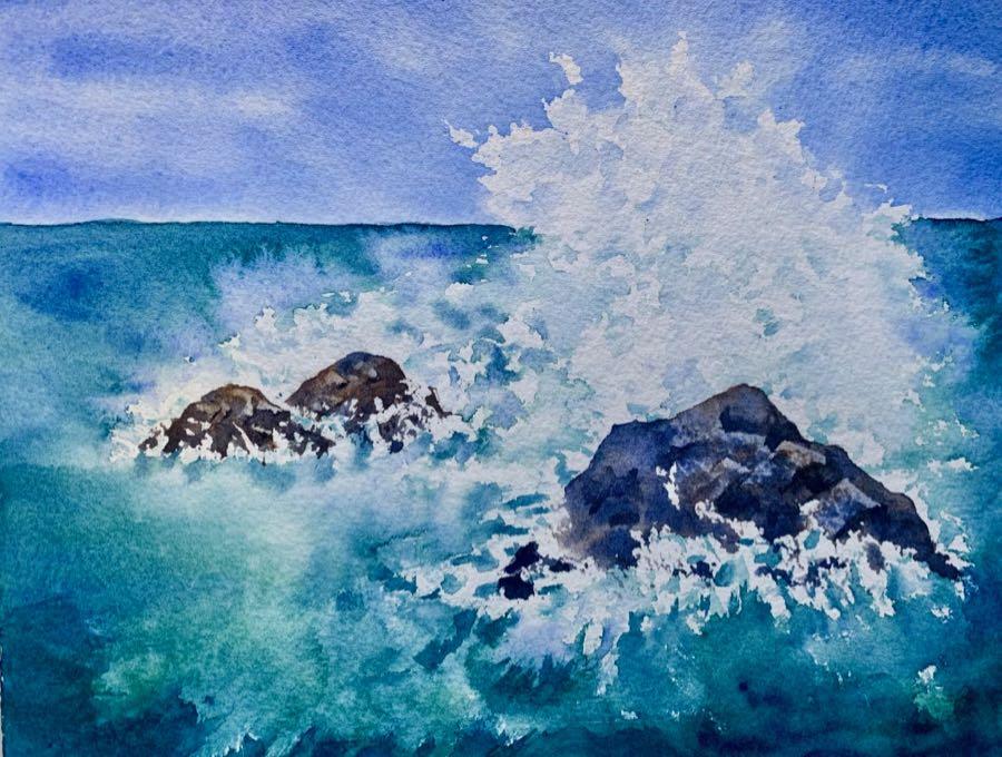 ocean rocky shore crashing watercolor against lessons watercolour pappas vinita watercolorpainting university techniques tutorials
