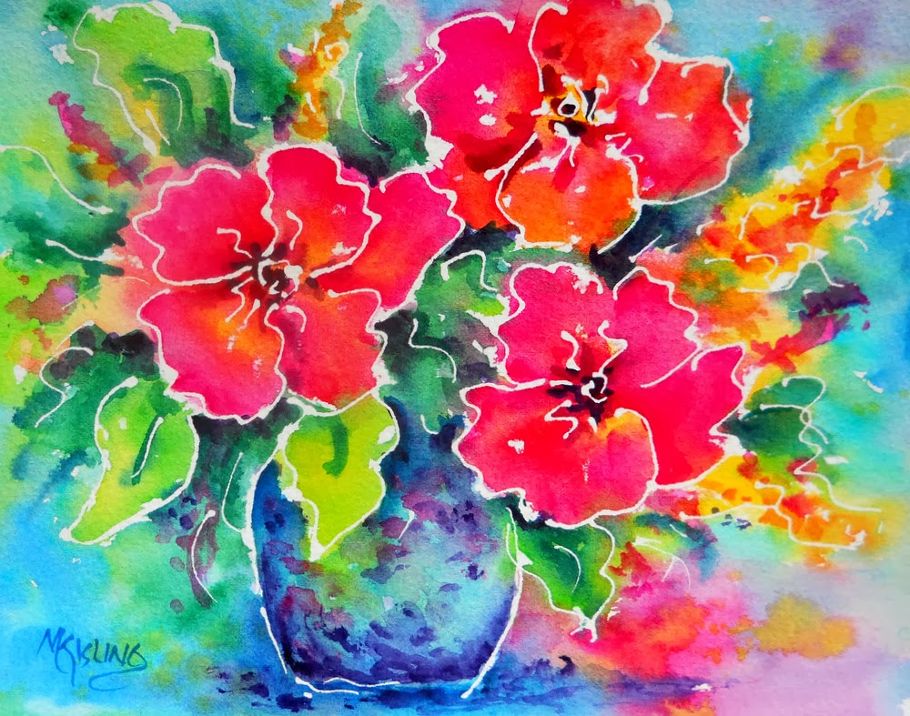 fluid masking colorful martha kisling lines watercolor fine bouquet painting classes batik heart workshops