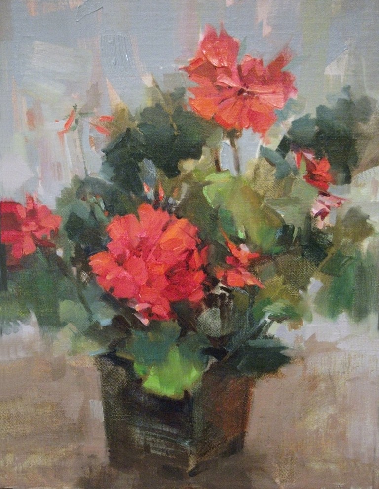 geraniums garnet mary maxam flowers geranium oil paintings still painting artist floral flores flower painted pintar cestos para open