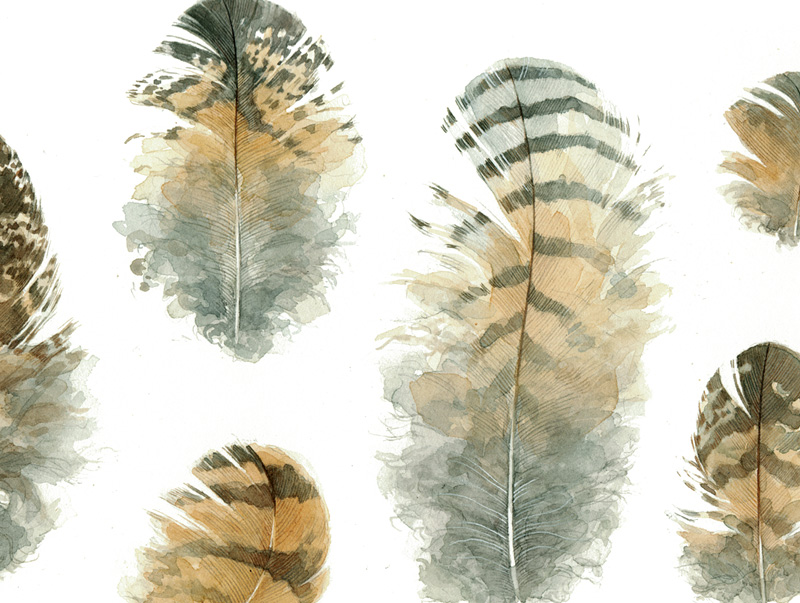 owl feathers horned watercolor feather spotted illustration bird brown painting facts scheirer david watercolors custommade prints dswatercolors patterns 13x19 colors
