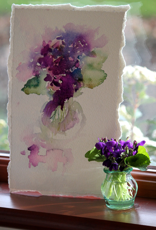 violets watercolor wood trowel paintbrush watercolour flower trowelandpaintbrush violet paintings wild kathleen maunder