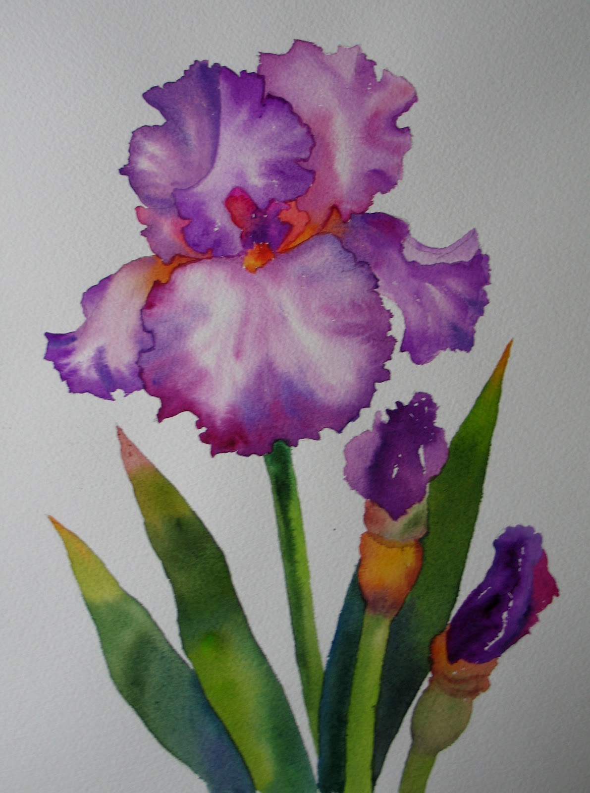 watercolor iris painting irises flowers paintings oil flower floral 4x4 painted purple doris botanical aquarell lessons 2008 joa dorisjoa paintingvalley