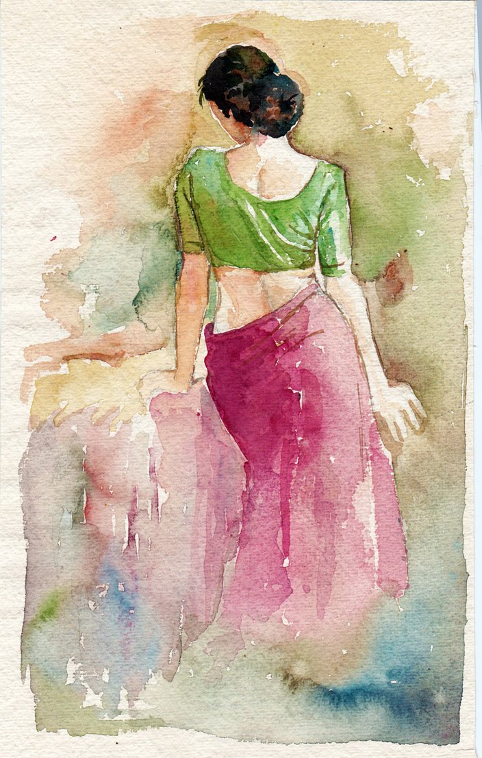 paintings john fernandes watercolour painting indian oil composition figurative figure woman water watercolor master gouache canvas indie india illustration colour