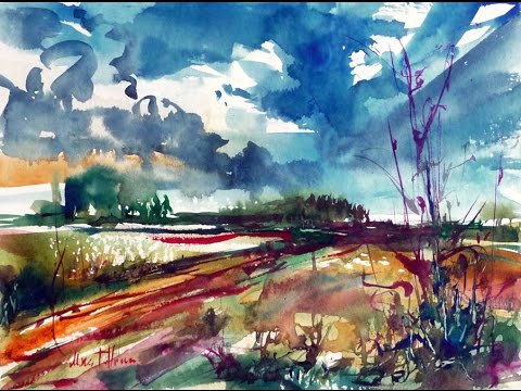 watercolor painting landscape tutorial nature speed watercolour abstract paintings demonstration watercolours drawings tutorials 2x