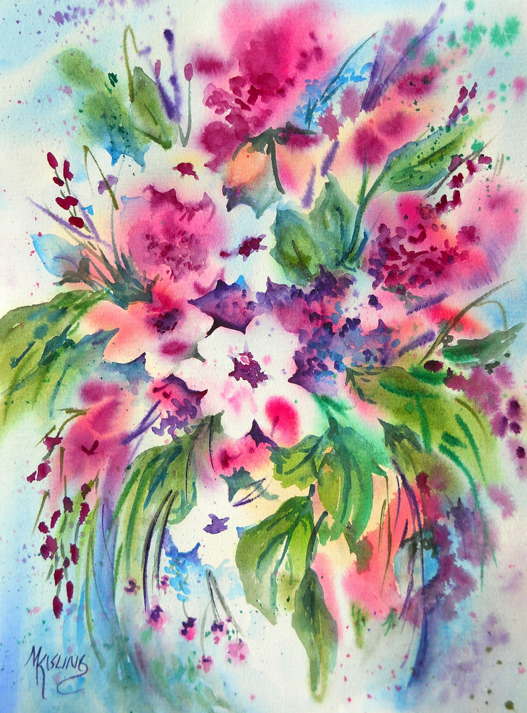 loose painting acrylic paintings fine flowers bouquet fushia louise baker floral watercolor flower abstract uploaded user