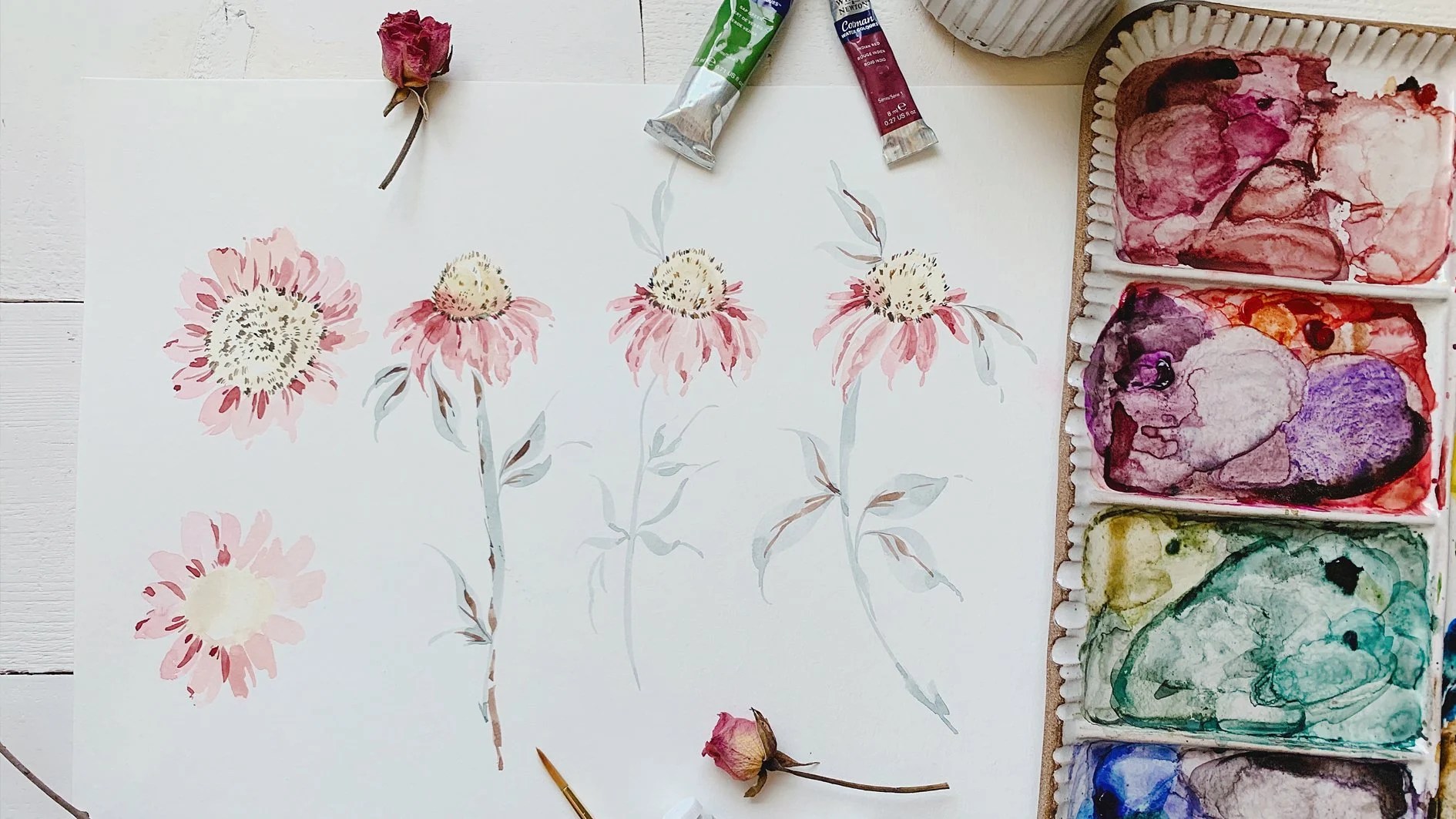 watercolor loose paint spring florals flowers tutorials learn beginners painting snowberry flower floral erin step visit water
