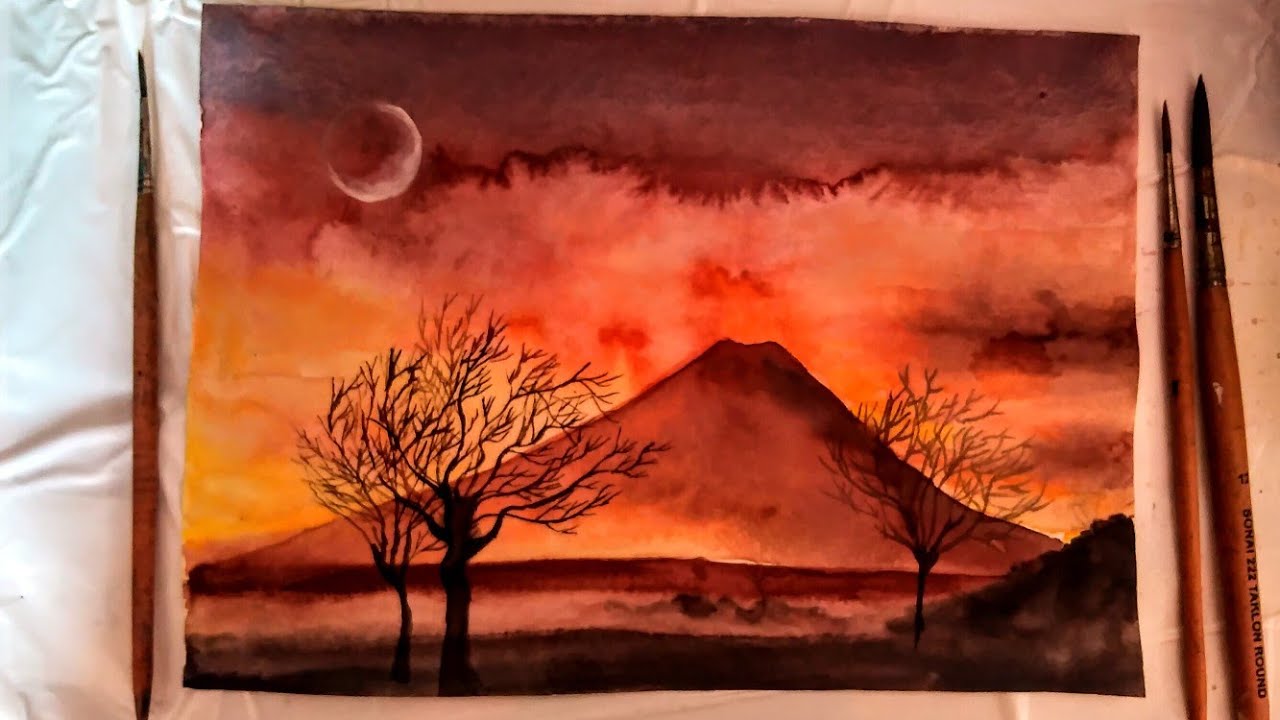 watercolor landscape nighttime tutorial moon scratchmadejournal watercolour journal paint tutorials paintings scratchmade zdroj članku winter