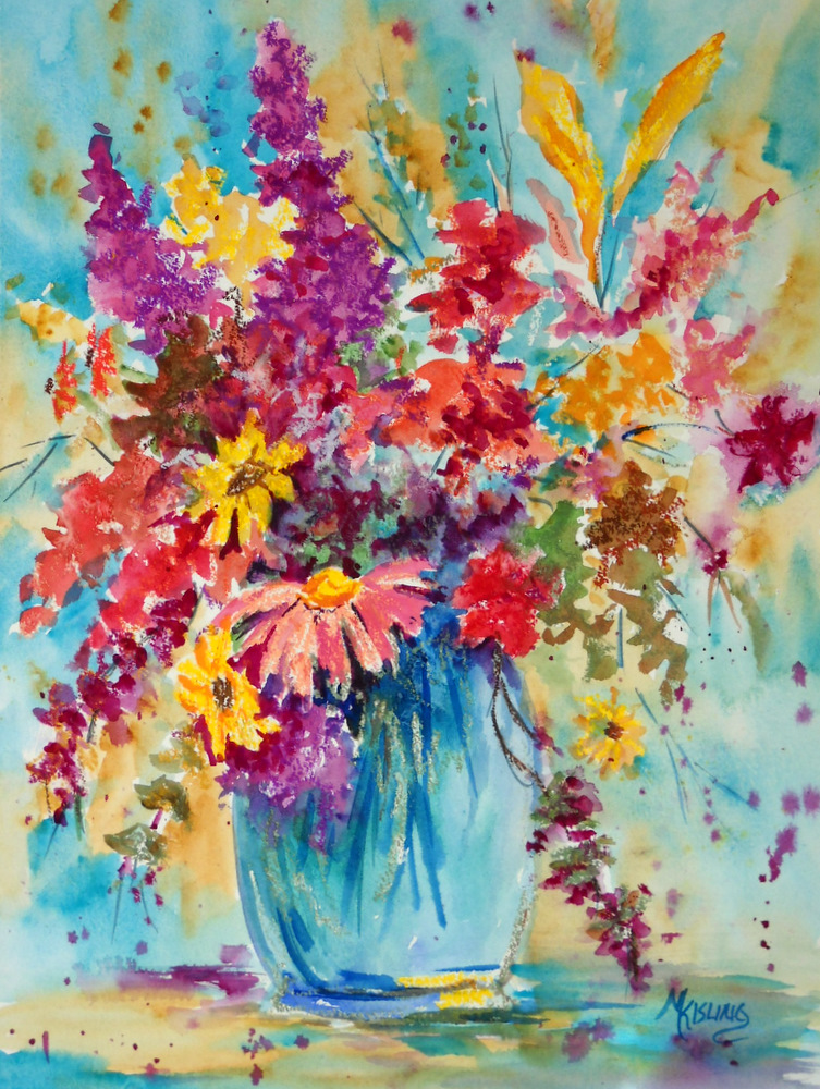 pastel oil watercolor flowers mixed paintings pastels bouquet colorful kisling martha artist fine heart medley flower painting water watercolors summer