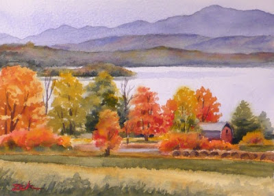 autumn landscape watercolor painting lake atmospheric perspective paintings oil foliage colorful hills