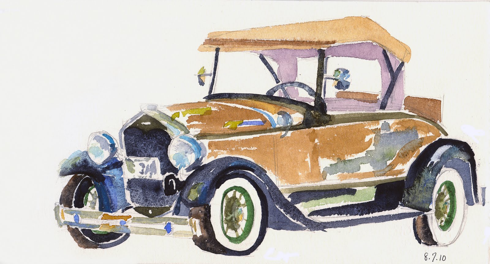 antique cars painting watercolor plein sem par air sketched visited sleek convertible came owner while byrom mary