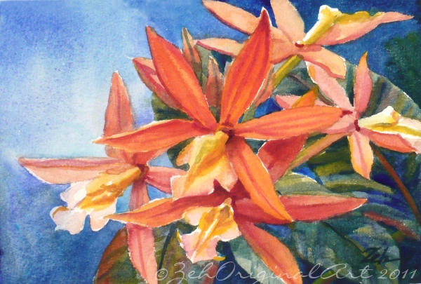 flowers orange watercolor orchid tropical painting paintings oil