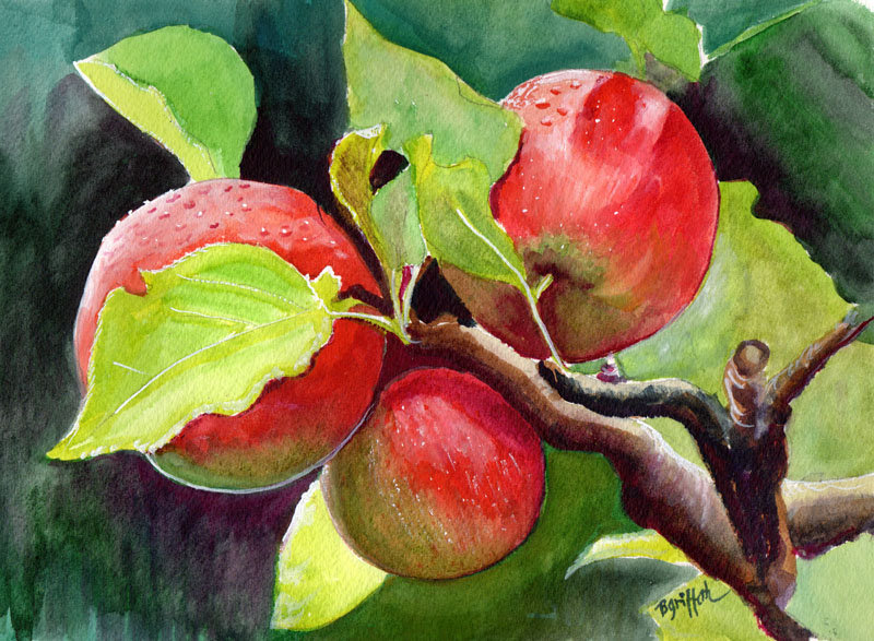 watercolor fruit painting robin apple apples tree flowers trees watercolour prints bookhout miller fruits paintings posters artistwebsites