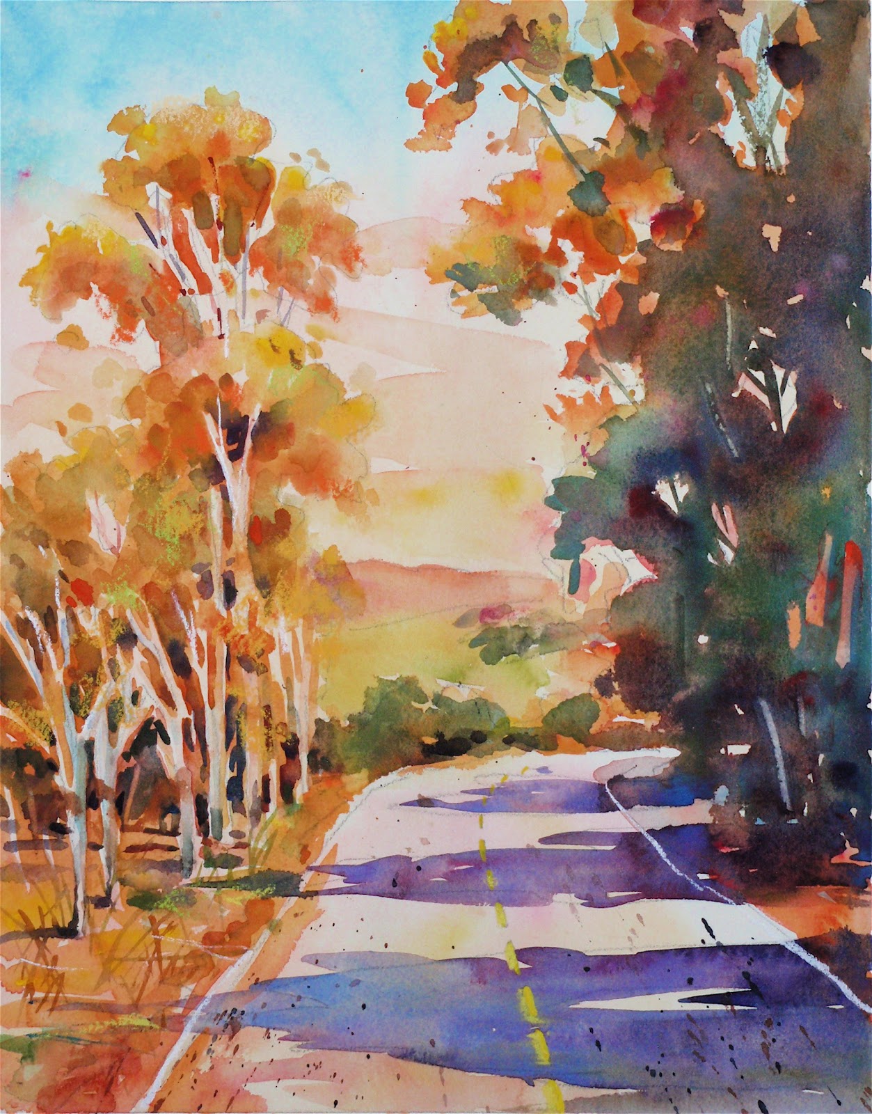 lobenberg david eucalyptus watercolor aspen road california lane tree paintings trees watercolour landscape winter painting oil dreamin paisajes yosemite early