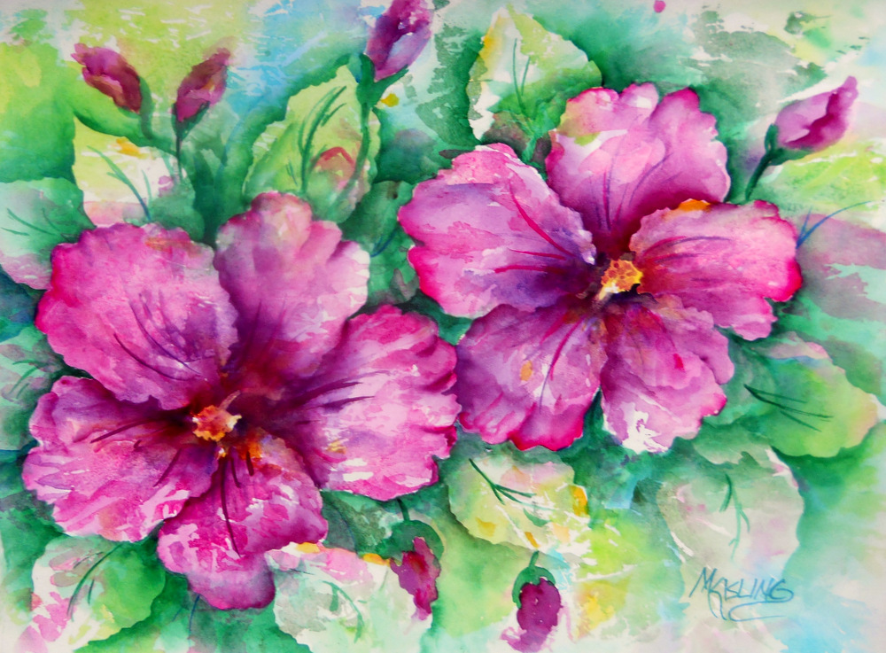 hibiscus marionette taboniar watercolor painting print paintings hawaiian hawaii flower kauai floral colors