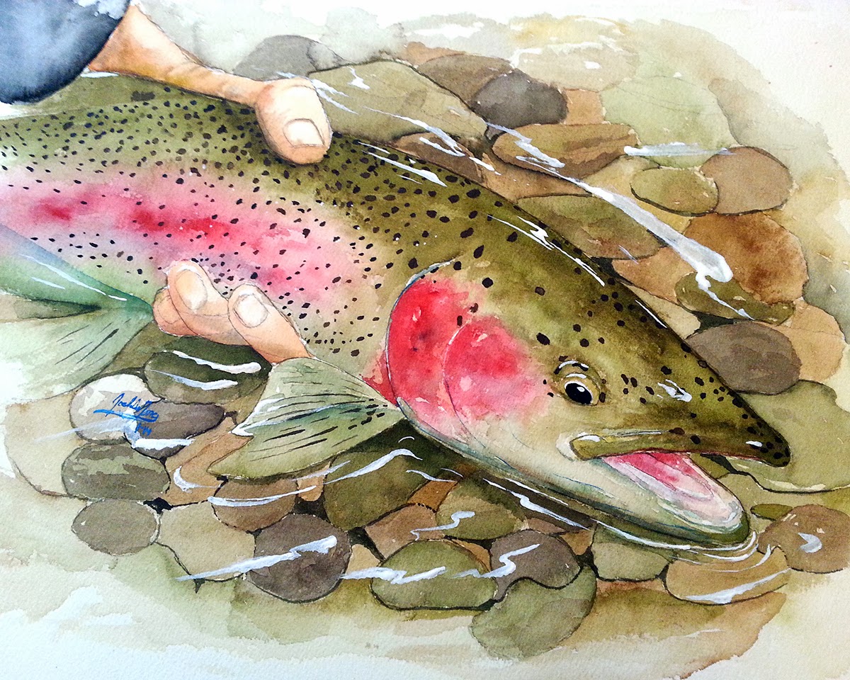 trout rainbow watercolor rogers fly fishing david artist signed paintings fish dj artists fine djr artwork arte acuarela 29th march
