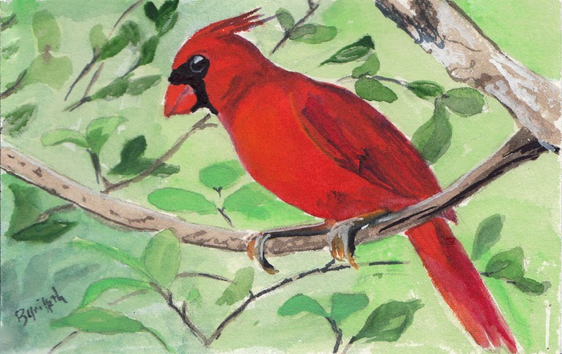 cardinal watercolor painting bird male birds david wall cardinals paintings 5x7 watercolors drawing christmas scheirer archival prints dswatercolors nature studiotuesday