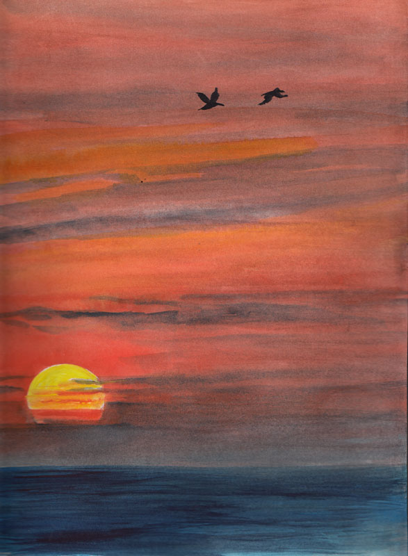 sunset watercolor painting easy gouache paintings sky beginners simple paint oil landscape demonstration watercolors guache very ocean drawing techniques