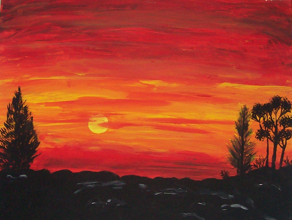silhouette painting sunset projects paintings watercolor lesson landscape elementary 3rd grade lessons mermaid designed drawings teacher western camp warm colors