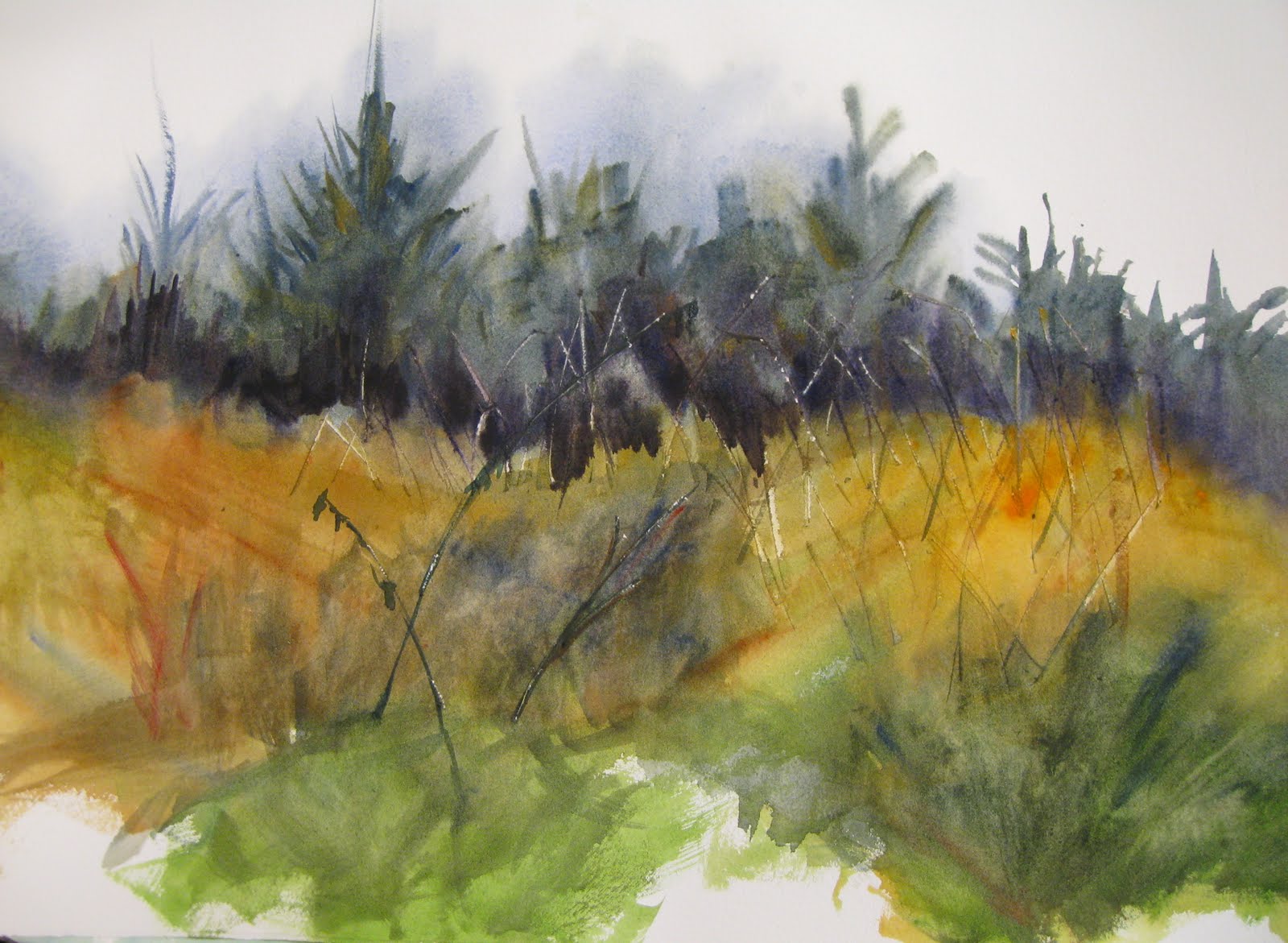 abstract fong tom floral watercolor california landscape winter painting
