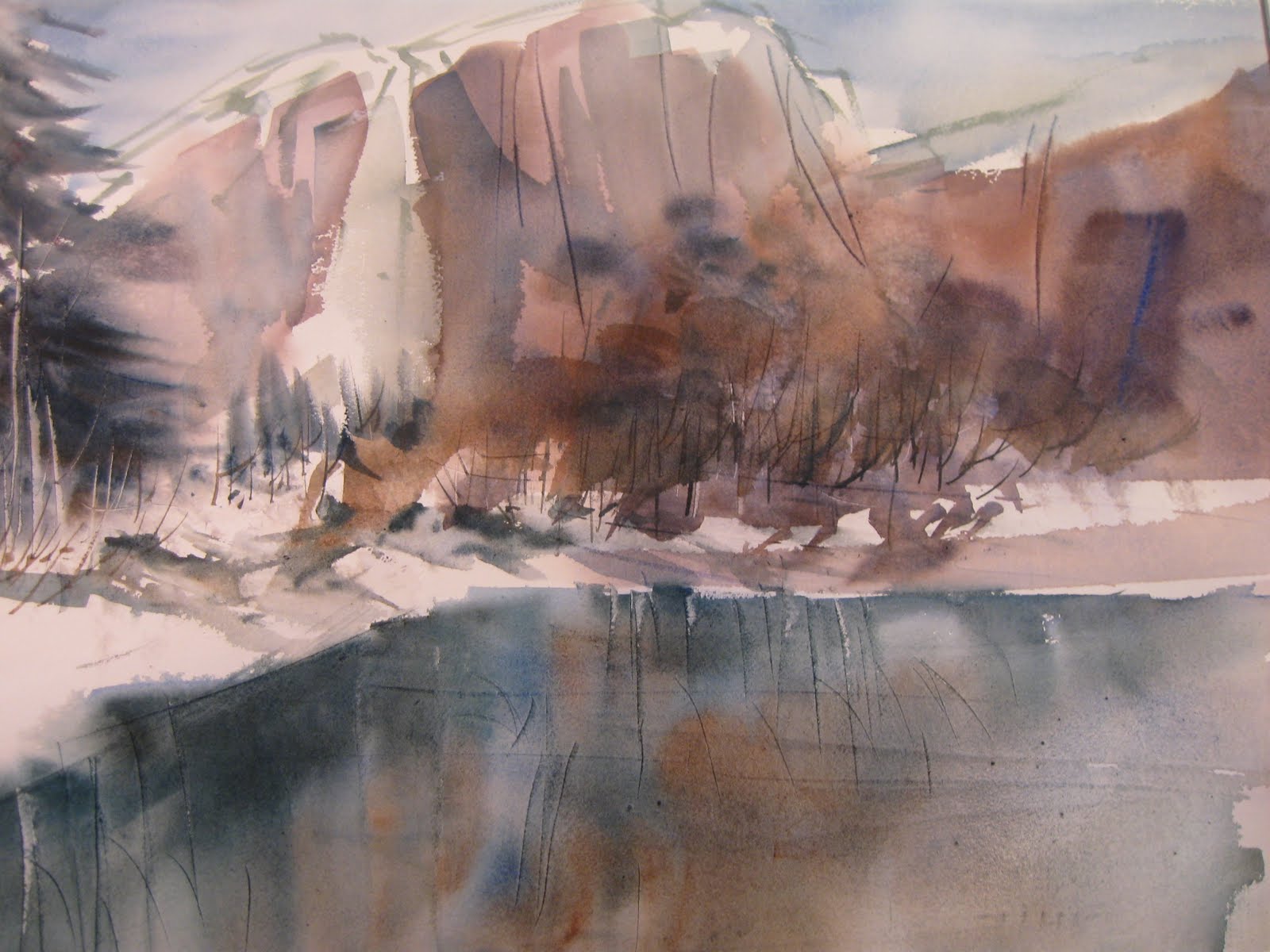 watercolor winter landscape paintings tom fong painting california yosemite loose snowy creek watercolors dome half fine artwork prints getdrawings paintingvalley