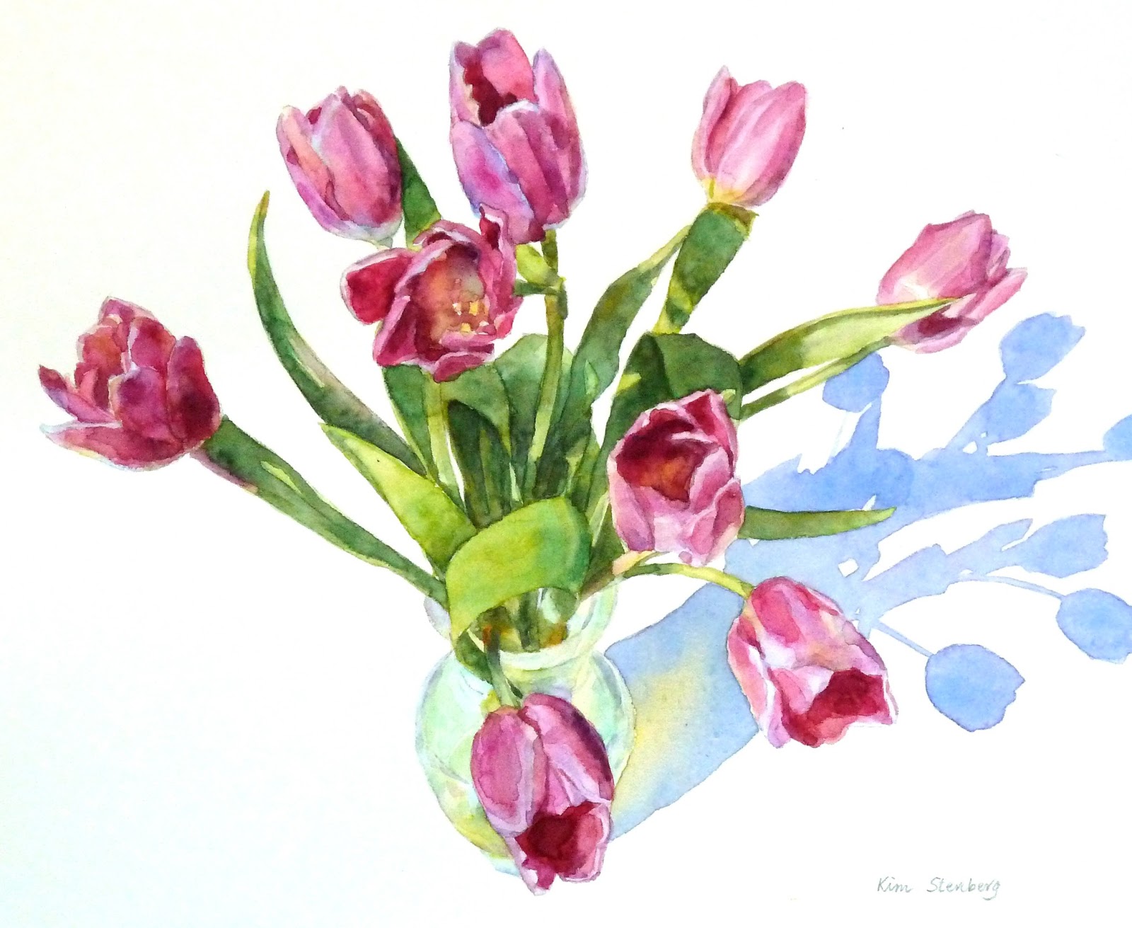 watercolor flowers tulips pink draw hand mary painting pashkova paintings wall 23rd uploaded march which