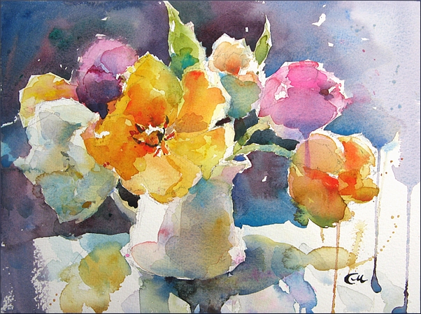 watercolor flowers tulips paintings flower fine spring watercolour bouquet vase painting artist floral tulip yellow vases acrylic similar summer pretty