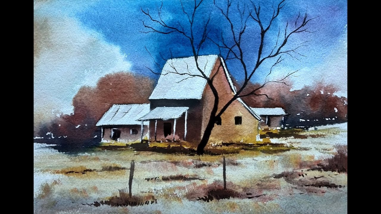 painting winter watercolour watercolor landscape village countryside paintings salaovirtual legacypaintingjournal ru