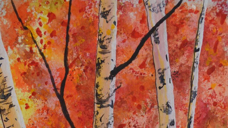 autumn birch trees painting watercolor fall landscape tree canvas oil impasto knife palette lessons sacramento
