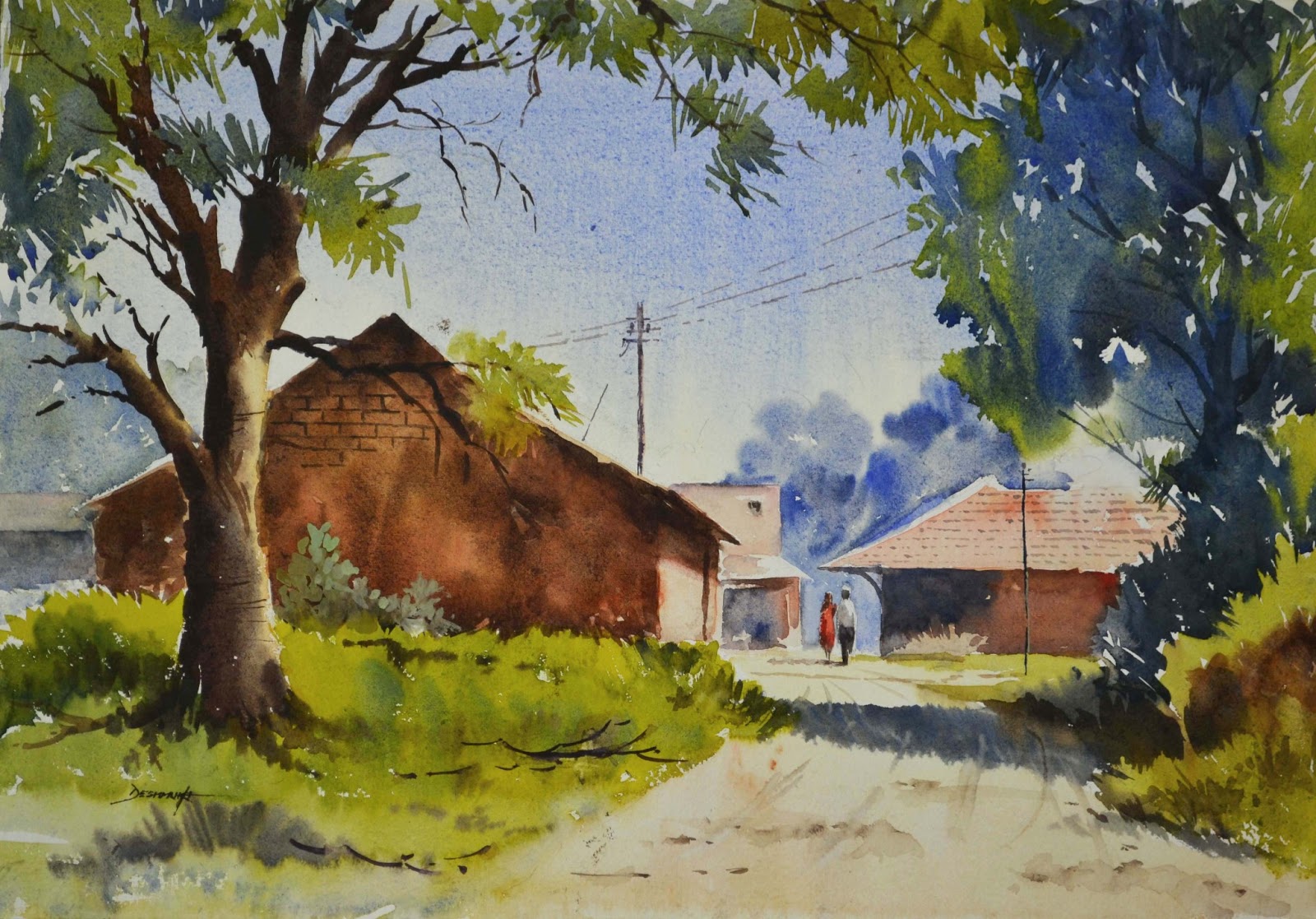 village indian paintings watercolor painting rural artist areas chavan akash india watercolour landscape water country colors watercolors reads 1440