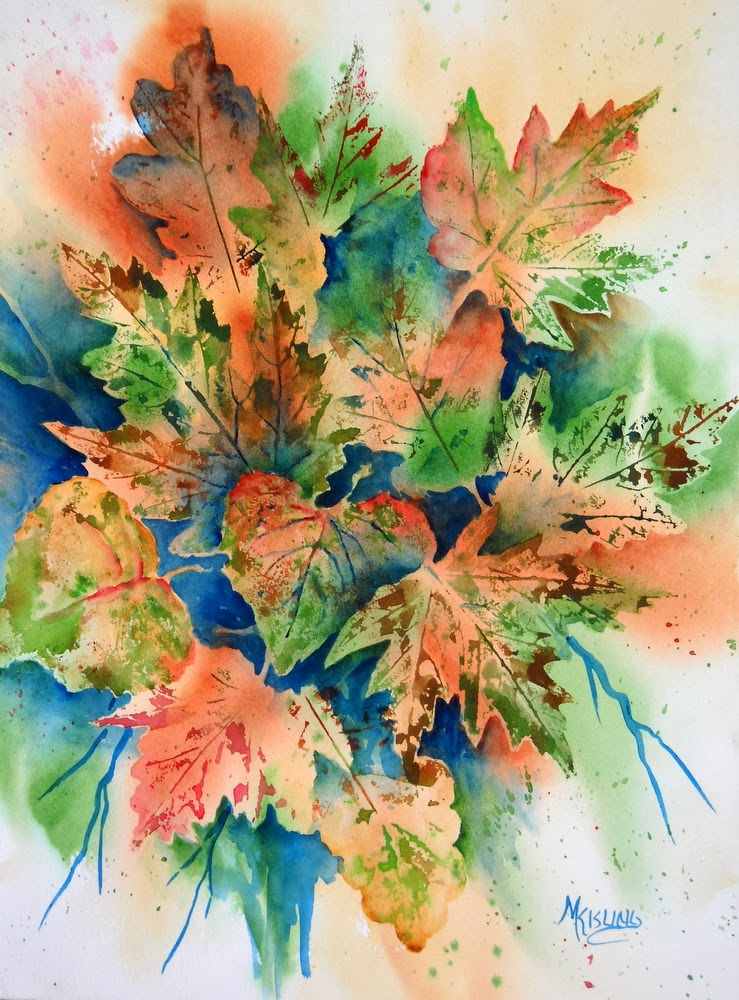 watercolor maple leaves trowel paintbrush leaf paintings painting autumn trowelandpaintbrush prints visit drawing maunder sold