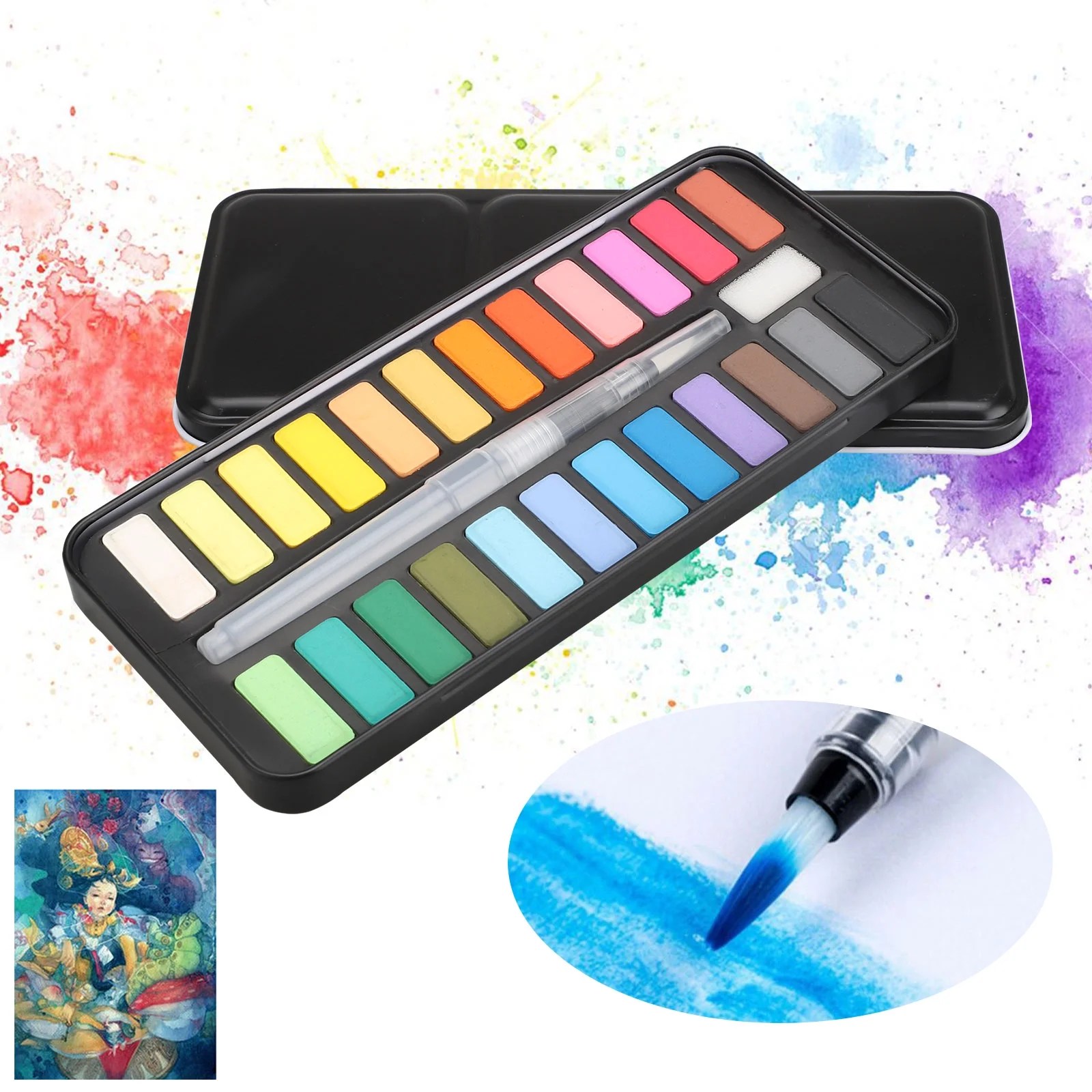 paint watercolor solid paints colors water metal painting case portable bright gifts supplies pigment brush beginner toxic brushes palette aliexpress