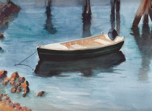 row boats zubrod rockport pamela harbor watercolor