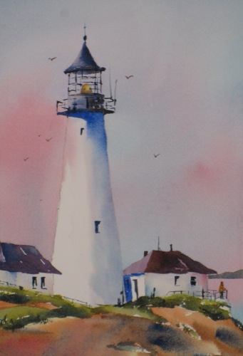 watercolor painting lighthouse maine cliff ocean head portland cox paintings watercolors lighthouses famous artists artist x10 tom draw