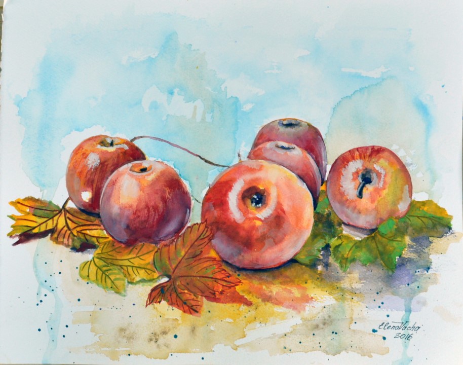watercolor apple painting fruit 8x10 inches mat kitchen