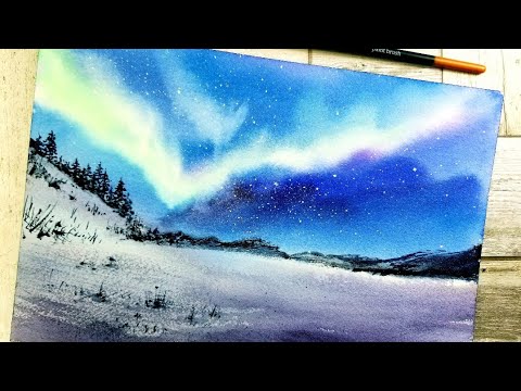 northern lights painting watercolor demonstration watercolour paint aurora borealis water drawing