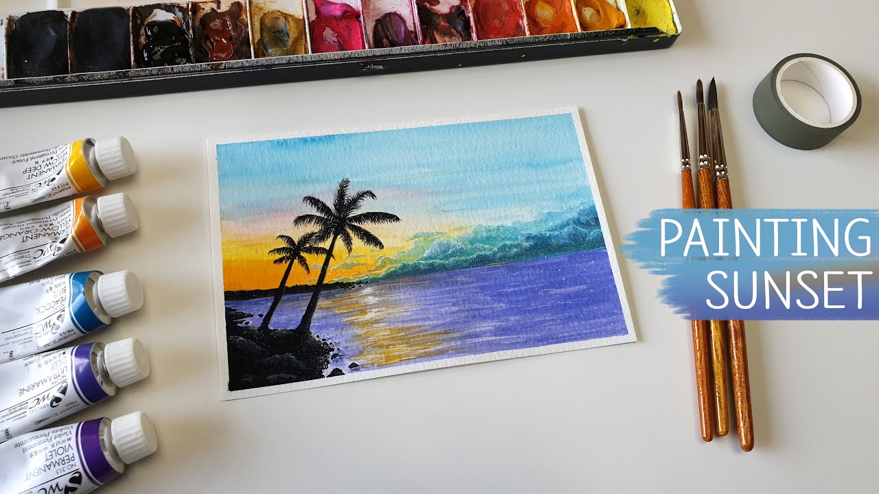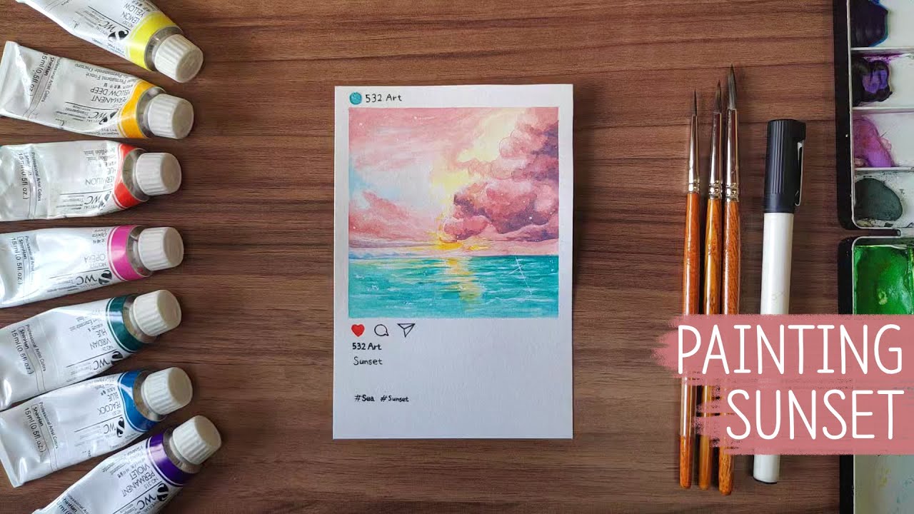 ocean watercolor sea painting oats paintings seascape beach sunset water paint peach paper oil frame watercolors 7x10 landscape box beaches