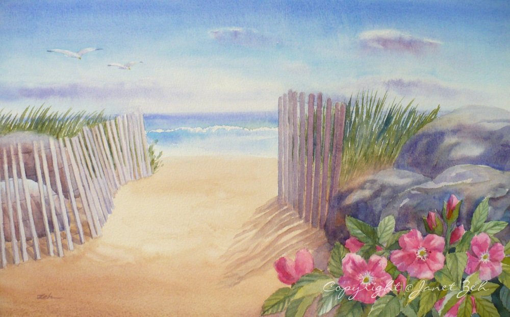 beach watercolor painting east island rhode paintings seascape custom janet artwork 12x16 zeh ocean x16 oil ri
