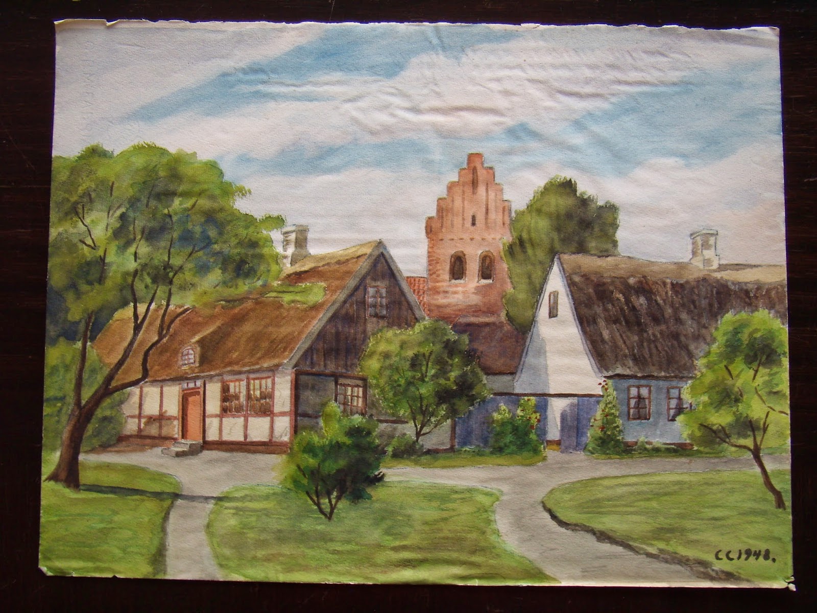 watercolor painting of village scenery