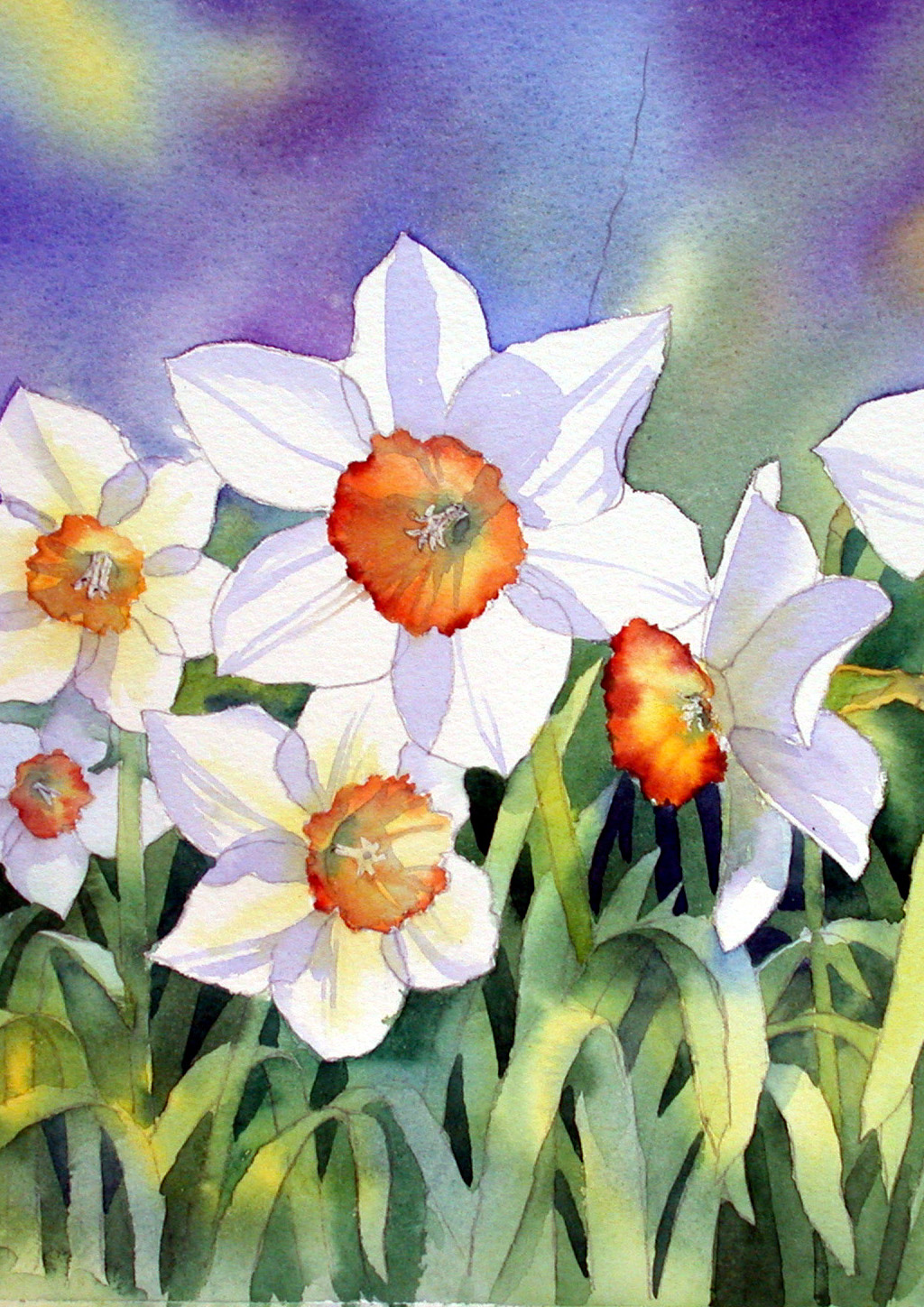 watercolor daffodils painting cathy daffodil spring hillegas floral flowers flower yellow purple arts prints revisit later favorites 11x14 favorite narcissus