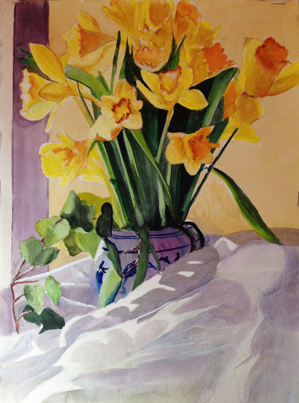 daffodil painting daffodils watercolor flower flowers paintings sue cotton yellow lynn watercolour floral jonquils spring single 1a oil web vase
